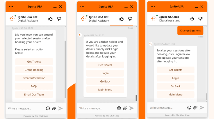 ChatBot's features enhanced the attendee experience despite having limited time before the event. It catered to potential attendees and those who had previously purchased tickets, creating a comprehensive and personalized concierge service. While the conversations mainly involved visitors clicking menus and links, the chatbot's simplicity and efficiency kept the user journey clear and engaging.