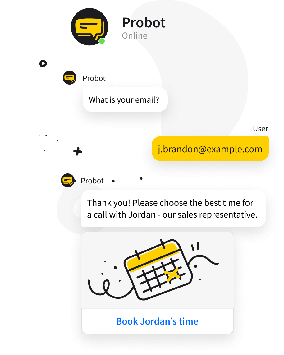 Schedule meetings with potential customers using a chatbot. Enable visitors to call you directly from the chat widget and answer their questions right away.