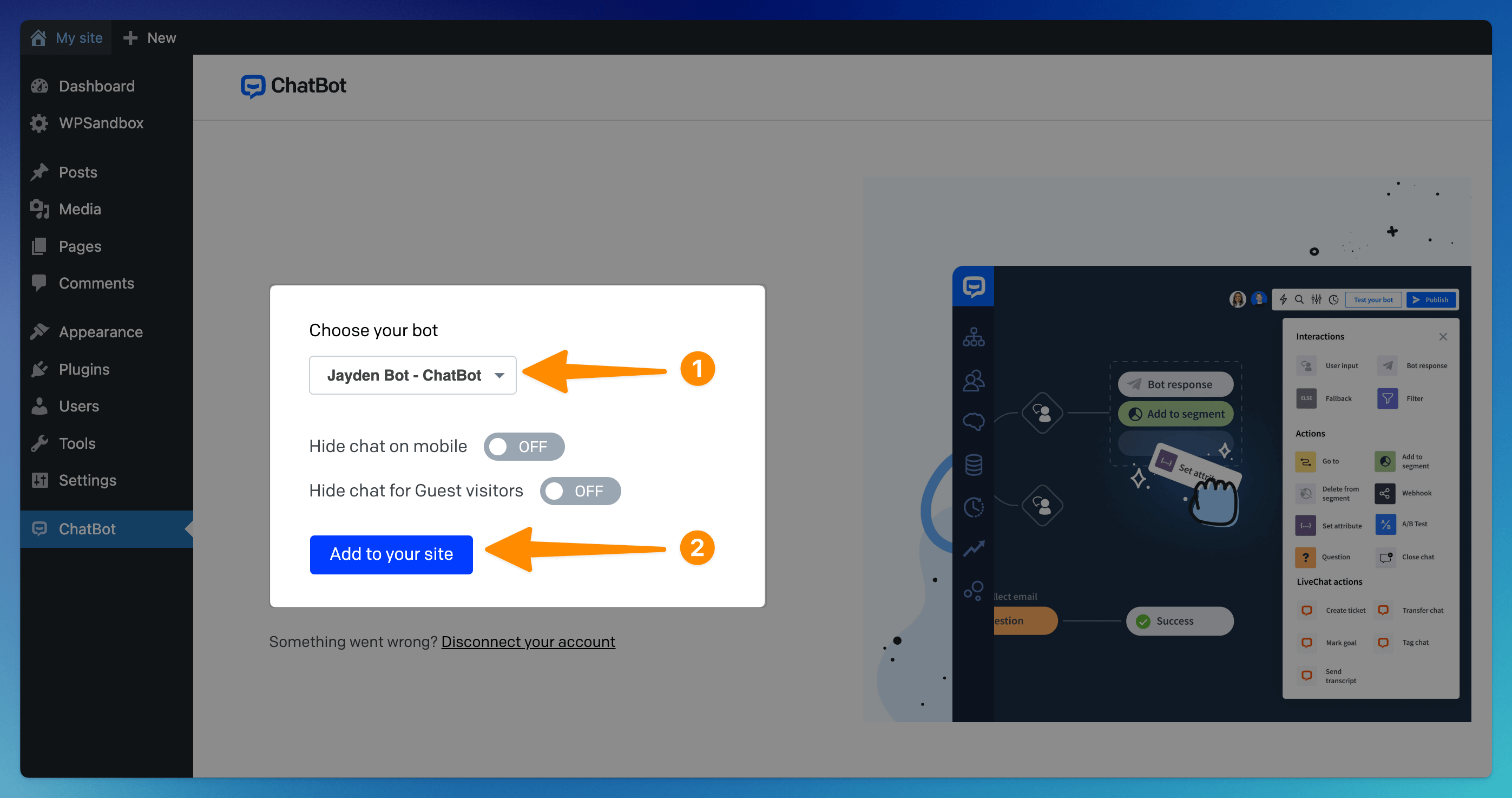 Done! Your bot should now be visible on your WordPress site. You can always come back to the plugin settings page to manage the integration.